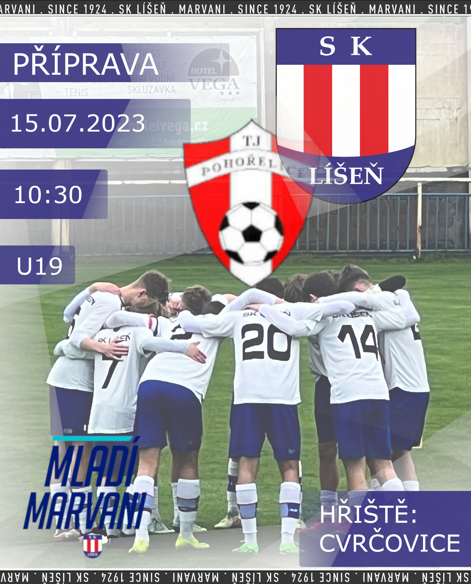 Své první přípravné utkání odehraje kategorie U19 proti mužům z Pohořelic, kteří v minulé sezóně postoupili do krajského přeboru. Tým mají kvalitiní a zajisté dobře prověří naše dorostence.